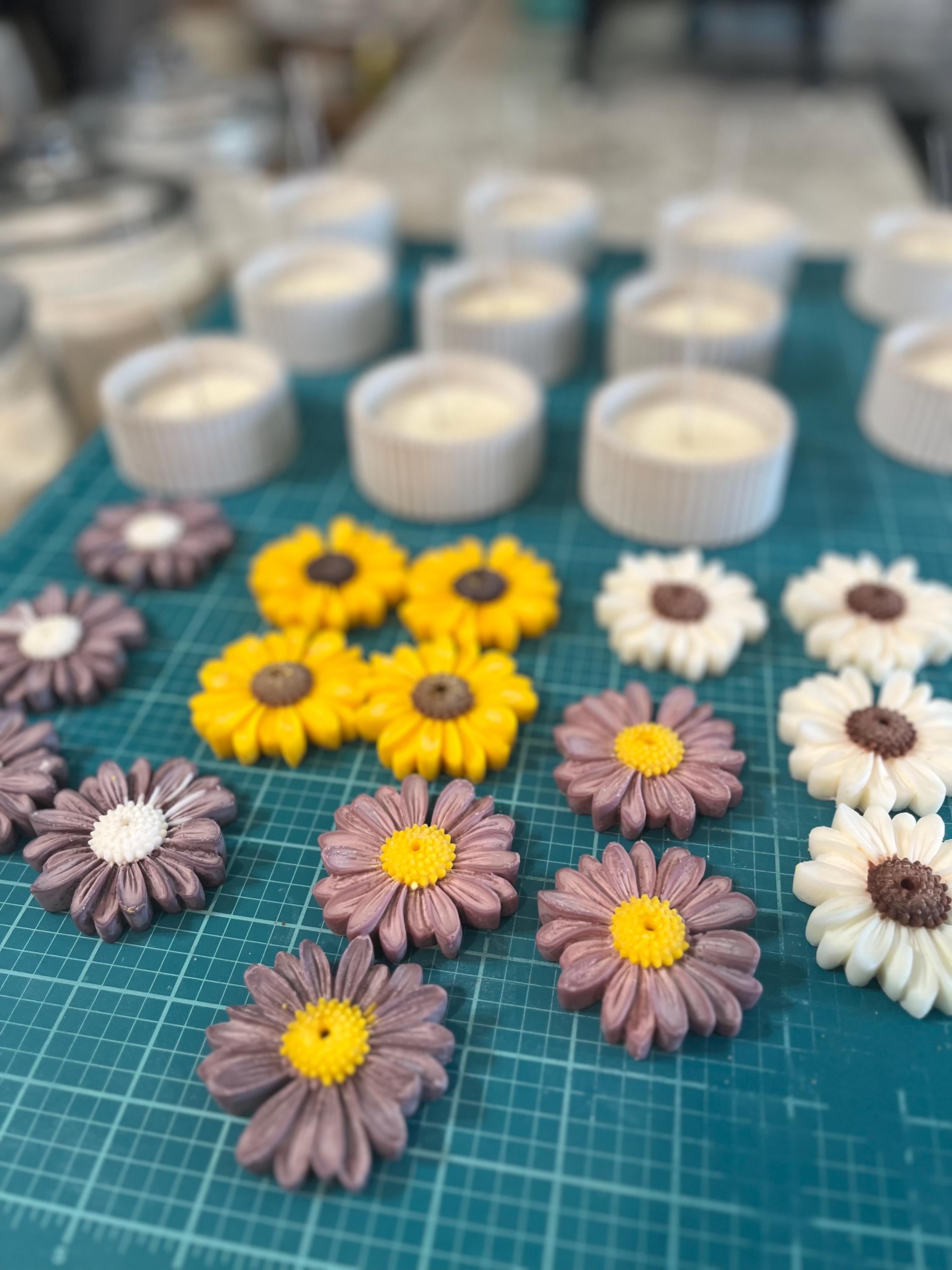 Brighten any space with our charming Daisy Candles, each one hand-poured with all-natural soy wax and topped with a beautifully detailed daisy in your choice of color. These candles are perfect for spring décor, gifts, or simply adding a cheerful touch to your home.