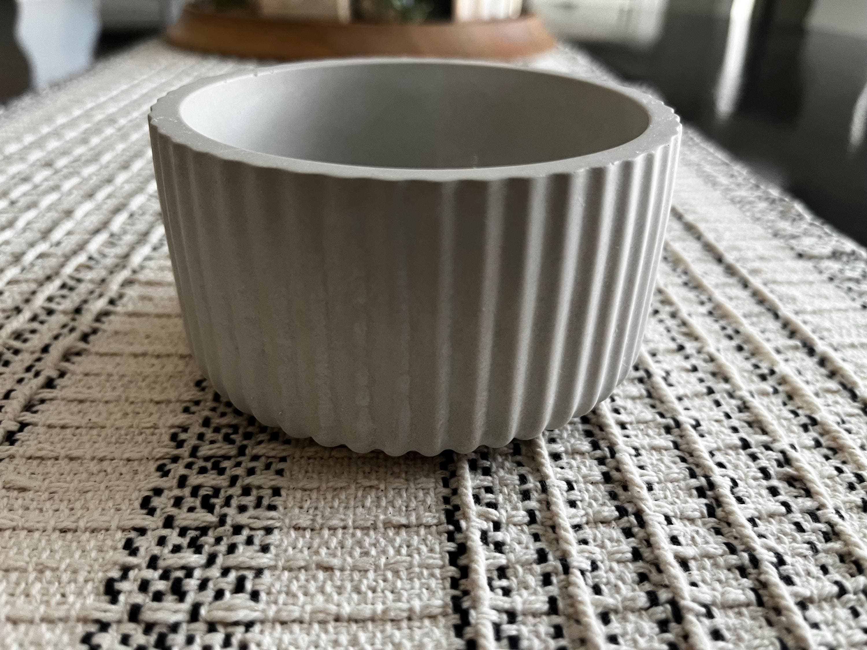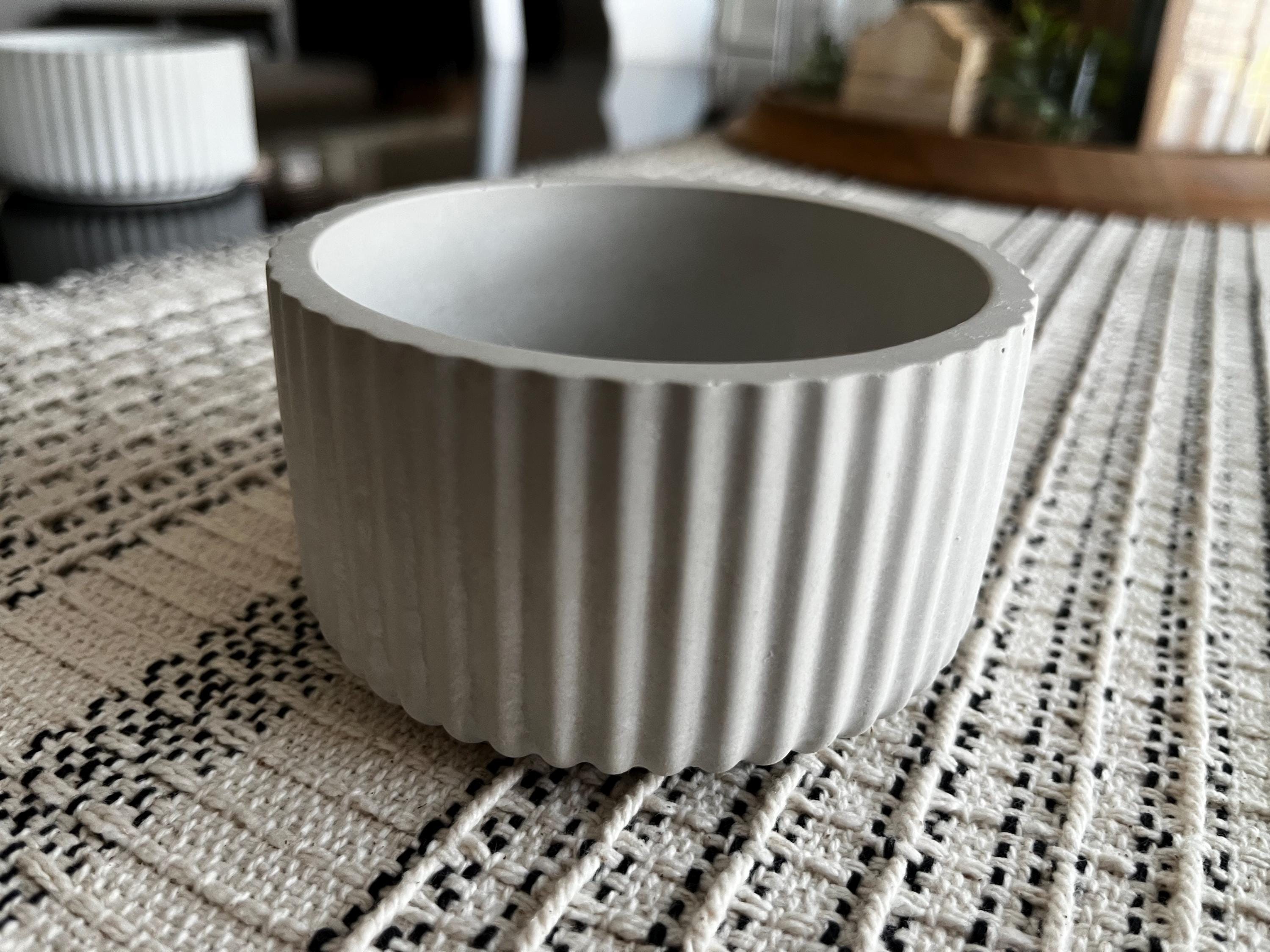 Elevate your home decor with this handcrafted fluted cement vessel. Featuring a sleek, vertical-ribbed design, this piece brings a touch of modern elegance and texture to any space.