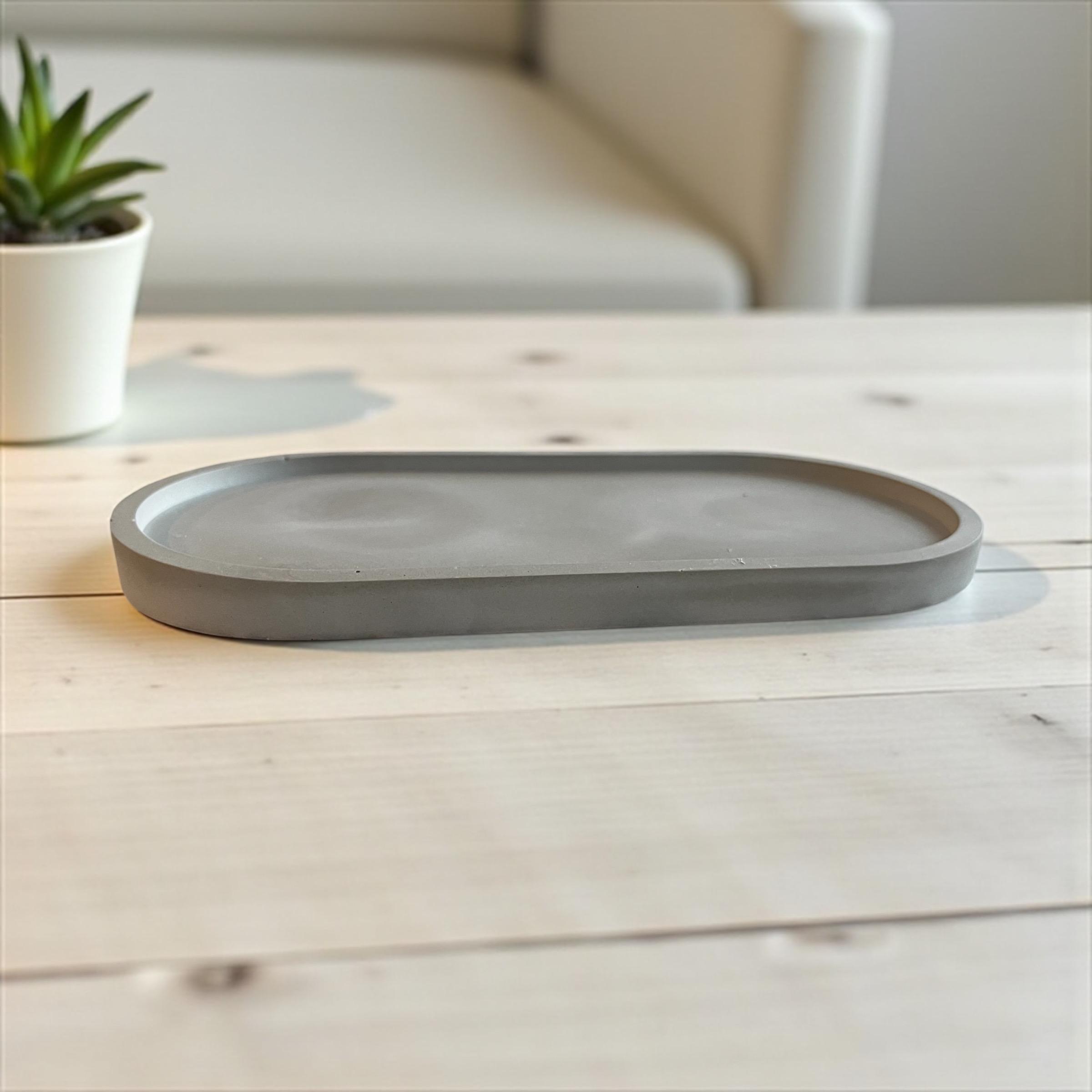 This sleek concrete oval tray combines industrial materials with refined design to create a stunning modern accent piece. The smooth, curved edges and clean lines showcase the natural beauty of concrete while adding a sophisticated, minimalist aesthetic.